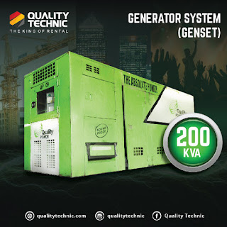 Barang dengan kualitas terbaik tentunya sudah menjadi syarat nomor 1 untuk Quality Technic. Quality Technic menyediakan jasa sewa dan jual alat berat, alat event dan alat perkantoran. Salah satu produk Quality Technic adalah AC dan GENSET.