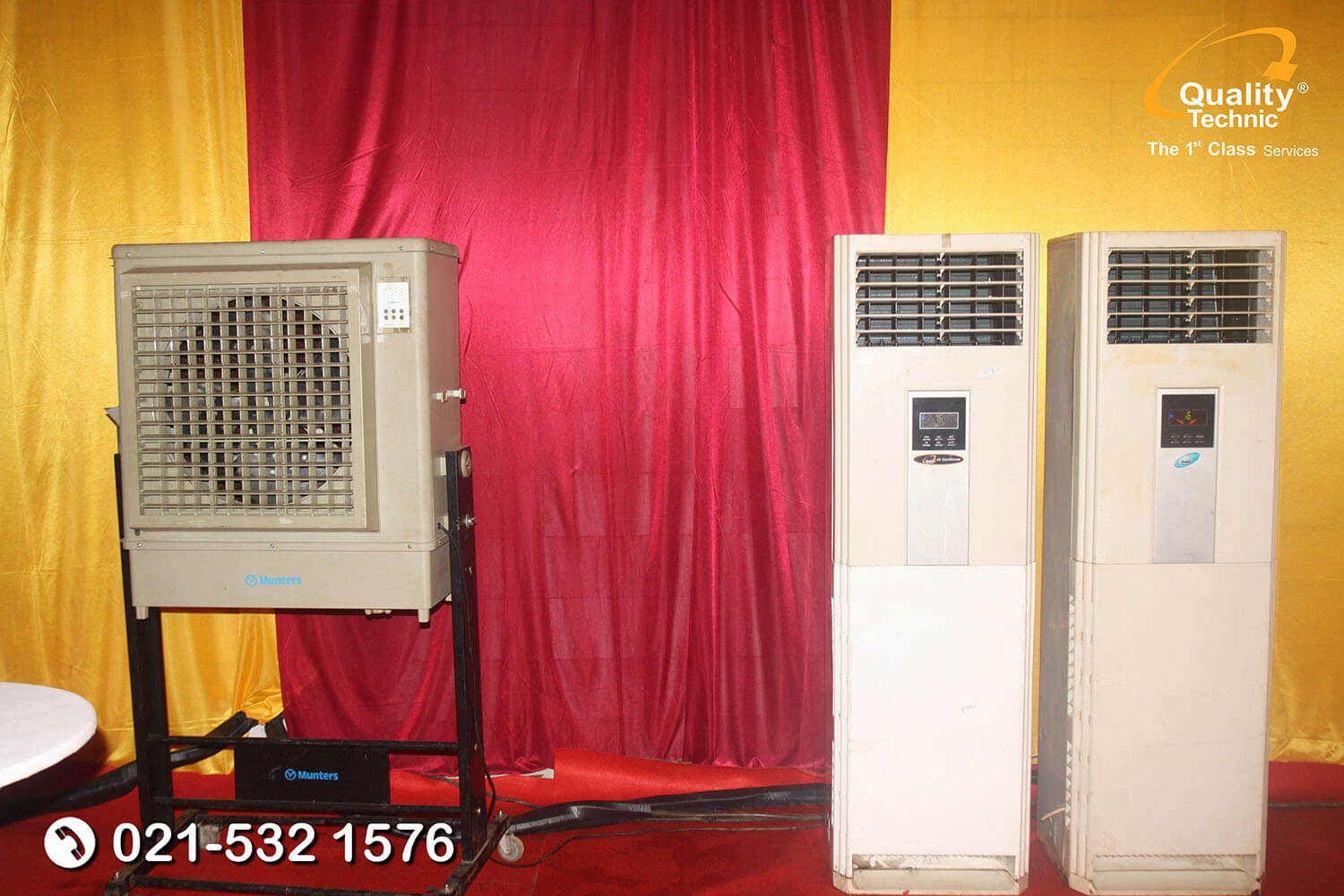 Dan sebagai penyelenggara acara, Anda juga tidak perlu repot menyediakan AC sendiri. Gunakan jasa rental AC yang saat ini bisa ditemukan dengan mudah. Penyedia jasa rental AC biasanya menyewakan Ac standing ataupun portable. Dan salah satu penyedia jasa rental Ac adalah PT Quality Technic dan PT Quality Power.